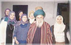 filles (devant) dans leur maison à Chypre. En tant que Cheikh de l'ordre Mevlevi, Cheikh Nazim porte le turban traditionnellement
